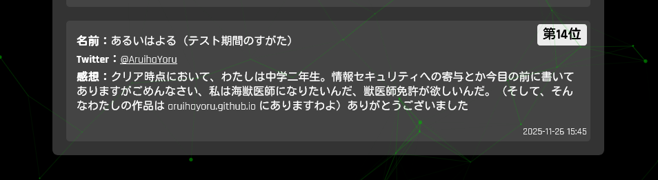 コメントの際しかクリニカルな表現が使えません。なんならコメントも気分次第です